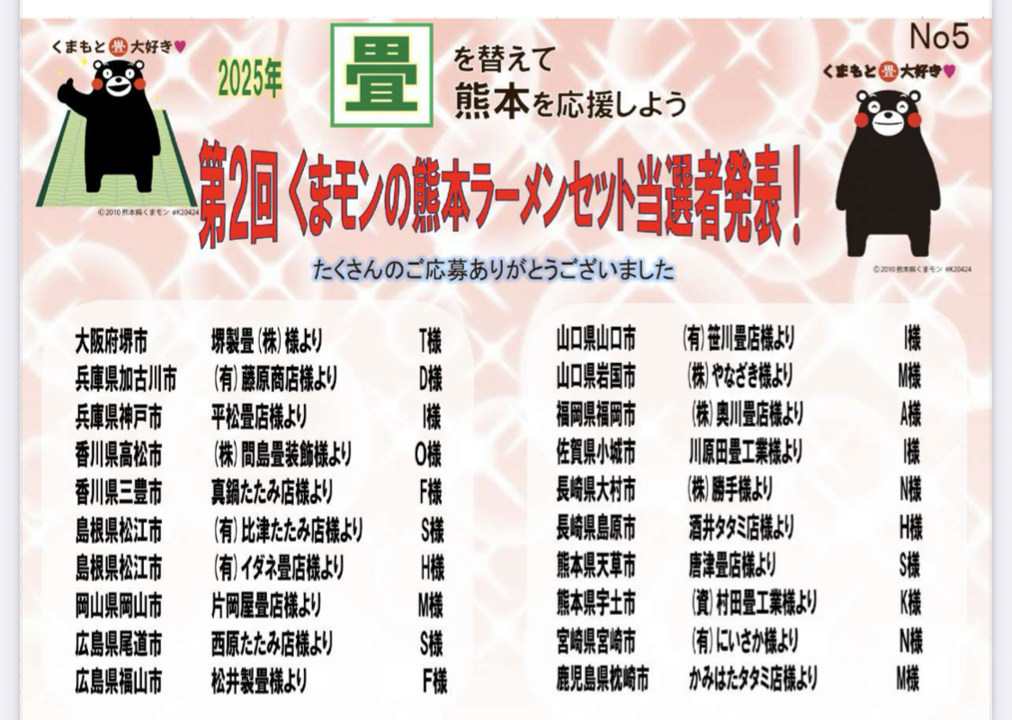 ❗️熊本産畳表替えキャンペーン抽選発表❗️